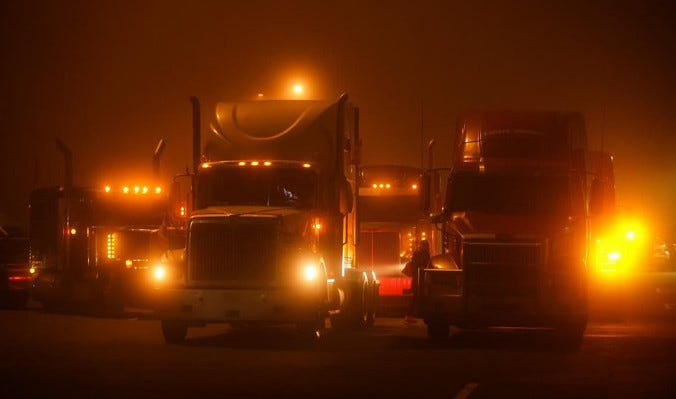 According to the corporate media, these racist, Russia-backed, working-class berserkers are running amok through the streets of Ottawa, waving giant “swastika flags,” defecating on war memorials, sacking multi-million-dollar “soup kitchens,” and eating the food right out of homeless people’s mouths. Rumor has it, a kill-squad of truckers has been prowling the postnatal wards of hospitals, looking for Kuwaiti babies to yank out of their incubators.