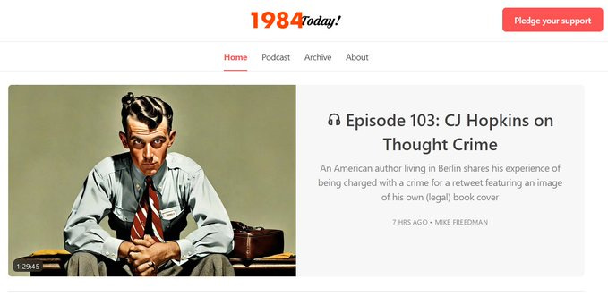 An interview I did for 1984 Today, a new podcast about all things dystopian, with Mike Freedman. We talked about my thoughtcrime prosecution in Germany, and global capitalism, and my dystopian novel, Zone 23, and other dystopian stuff.