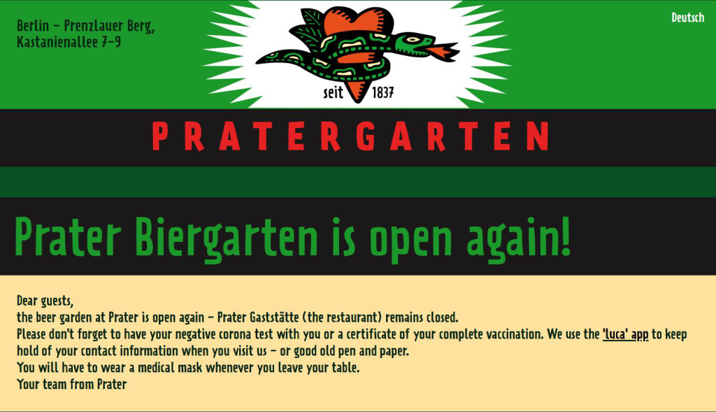 Here’s a notice from the website of Prater, a popular beer garden in Berlin: