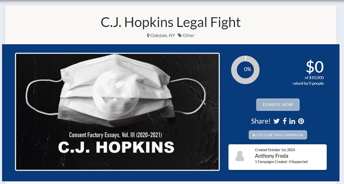 N.B. If you’re wondering why I put “legal defense fund” in scare quotes above, it’s to prevent the German authorities from bringing me up on fabricated fraud charges, as they have done to Michael Ballweg, who organized the big 2020 demo here in Berlin, after which the German authorities arrested him and imprisoned him for about nine months. The point being, if the balance of my “Legal Defense Fund” somehow ends up exceeding my legal costs at the end of the day (if ever that day should come), the surplus will be reallocated to my “Get the Hell out of New Normal Germany Fund,” or, in other words, will be considered to be general support of my writing projects.