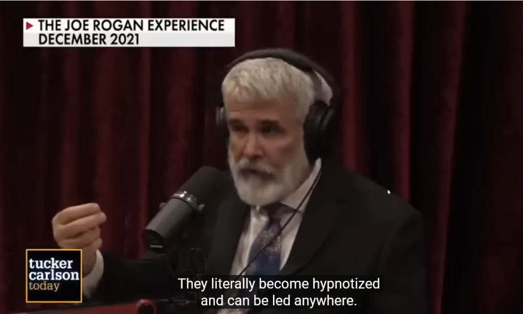 But I don’t mean to cast aspersions. Professor Desmet is, after all, “the world’s leading expert” on “Mass Formation Psychosis” or simply “Mass Formation” or whatever you want to call this fairy tale that he and others have been peddling, not just on clown shows like Alex Jones’, but to massive audiences like Tucker Carlson’s …