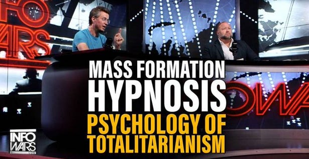 In this “Mass Formation” fairy tale, the political conflict disappears. The totalitarian system and those who resist it are replaced by a psychiatrist and a psychiatric patient. In this story, there is no one and nothing to fight. We just need to find a “cure” or a “treatment” for this bizarre new psychiatric disorder that keeps causing the masses to hypnotize each other and invent some new fanatical totalitarian ideology in order to alleviate the pent-up frustration caused by their loneliness and isolation by unleashing their rage on unhypnotized persons!