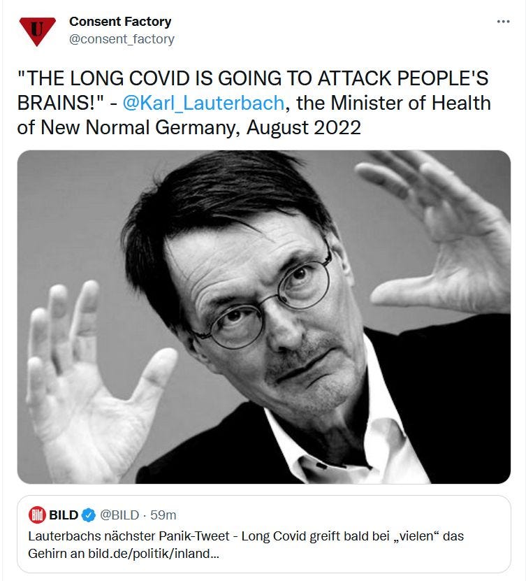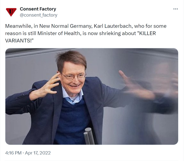 And then there’s the whole “vaccination” business. The Commission will certainly want to inquire into that. They will probably want to start their inquiry with Karl Lauterbach, and determine exactly how he accidentally lied to the public, over and over, and over again …