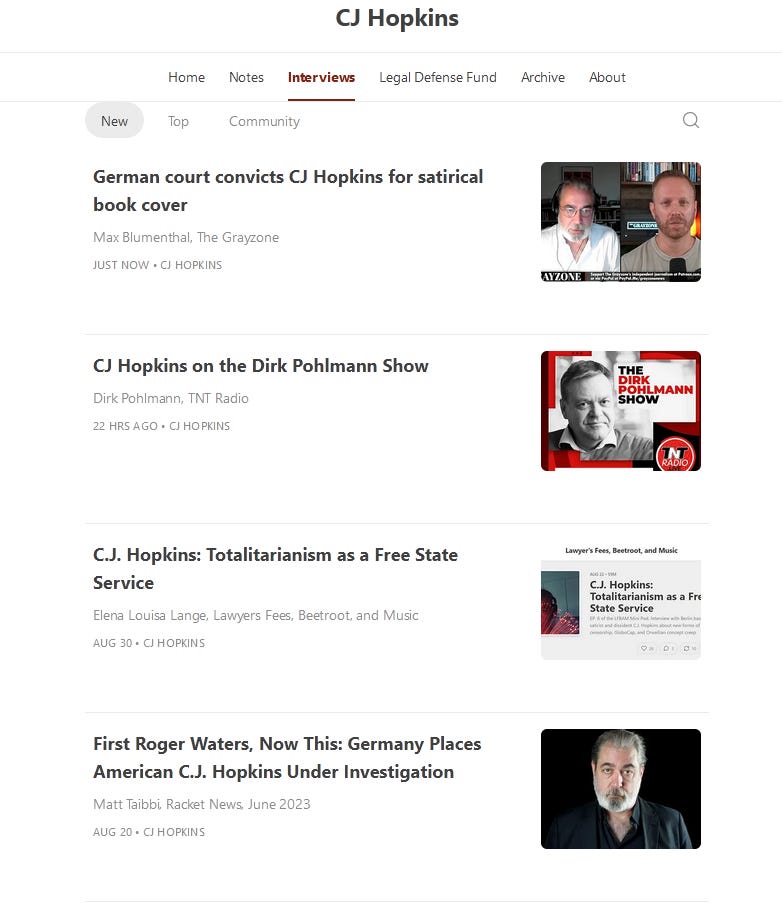 See down there, under my name, those sections? There’s one for my Legal Defense Fund, and there’s a new one called Interviews. I’ve been doing a lot of those since I received the Order of Punishment from the Berlin District Court.