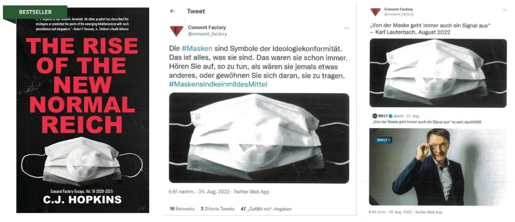 Oh, and, if you need a laugh (or to get totally depressed), I used the opportunity to offer a free lesson on The Fascist Mentality in a Twitter thread (or, well, kind of a thread). Hanno Hauenstein is a journalist who writes for The Guardian, The Nation, and assorted German outlets. I don’t have a personal problem with Hanno. He was just convenient teaching material for my lesson. (I’m sorry, Hanno, that I made you feel “unsafe” by bringing my prosecution to your attention.)
