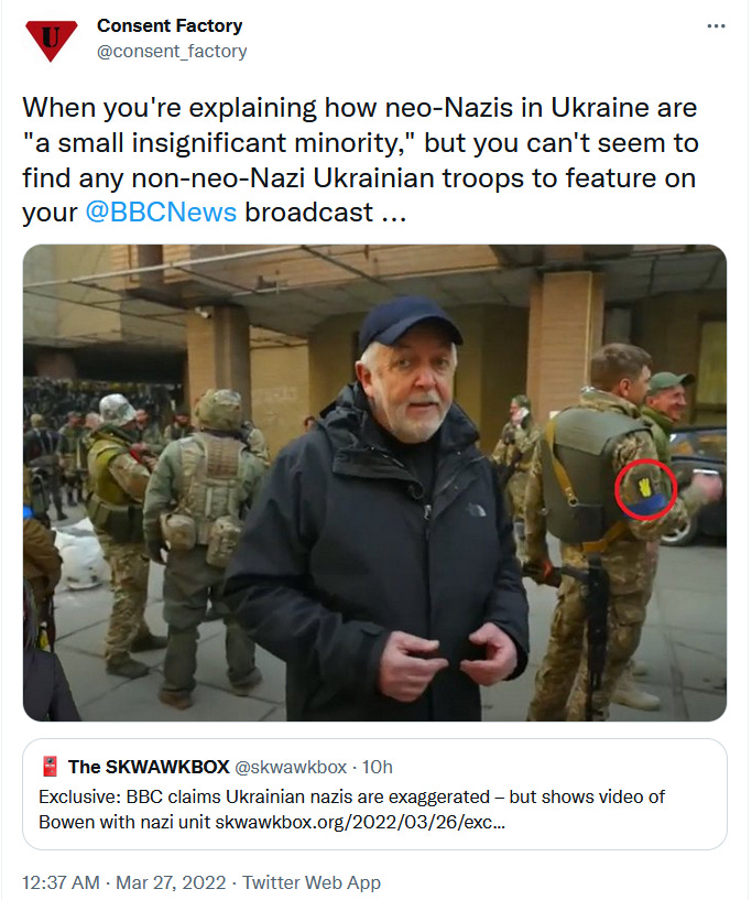 Or these Svoboda neo-Nazis that Jeremy Bowen of the BBC was hanging out with …
