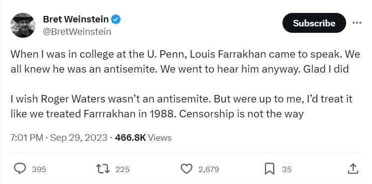 In the meantime, I’ll sign off and let folks get back to what’s left of The GloboCap Nazi Follies, and Elon’s trip to the Mexican border, or what’s his face pulling the fire alarm in Congress, or the Russell Brand thing, or the burning issue of whether Roger Waters is an anti-Semite …
