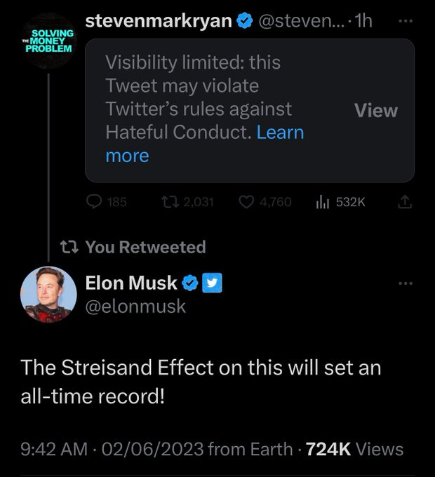 Anyway, it appears the Musktown Massacre has been averted, or postponed. So that’s a huge relief. Meanwhile, Twitter censorship continues. But who cares? It’s not like anyone actually gives a flying fuck about free speech. It’s the “cult-versus-cult” competition that’s the thing! And the Musk Cult is kicking Covidian Cult ass!