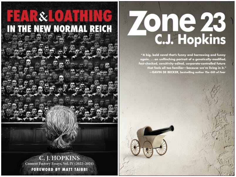I was planning to publish that insufferably pompous and crushingly boring column about the publishing industry and literature, and so on, because I’ve got a couple of new books coming out soon. The first one, Fear and Loathing in the New Normal Reich, will be published by Skyhorse Publishing in April. The other one is a new edition of my dystopian novel, Zone 23, which will be published by Arcade Publishing in July.