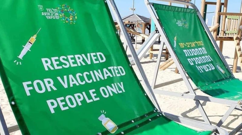 Israel’s “Green Pass” is the model for the future, which makes sense, in a sick, fascistic kind of way. When you’re already an apartheid state, what’s a little more apartheid? Here’s a peek at what that looks like …